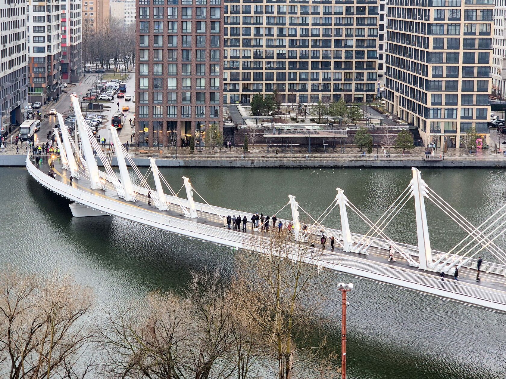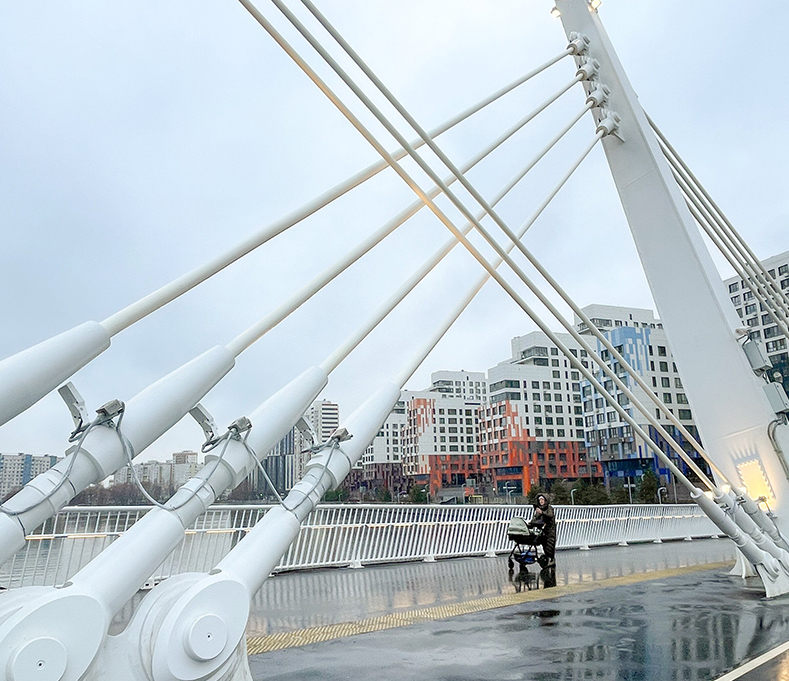 Его открытие состоялось в январе этого года. Мост, похожий на парусник, — безусловное украшение прибрежного пространства. Мостовой пролет, выполненный в форме полумесяца, мачты, подвешенные на натяжных стержнях. И кажется, вот-вот сейчас это чудо отправится в удивительное плавание. Такое архитектурное решение не случайно. В районе многое напоминает о водной стихии. Например, названия улиц, жители которых теперь добираются до станции «Нагатинский Затон» в три раза быстрее. Путь до метро от Корабельной, Судостроительной, улицы Речников и жилого комплекса «Ривер парк» благодаря новому мосту теперь составляет всего шесть минут вместо прежних девятнадцати. Проще и удобнее стало добираться от метро до причала и пассажирам регулярного речного транспорта.