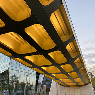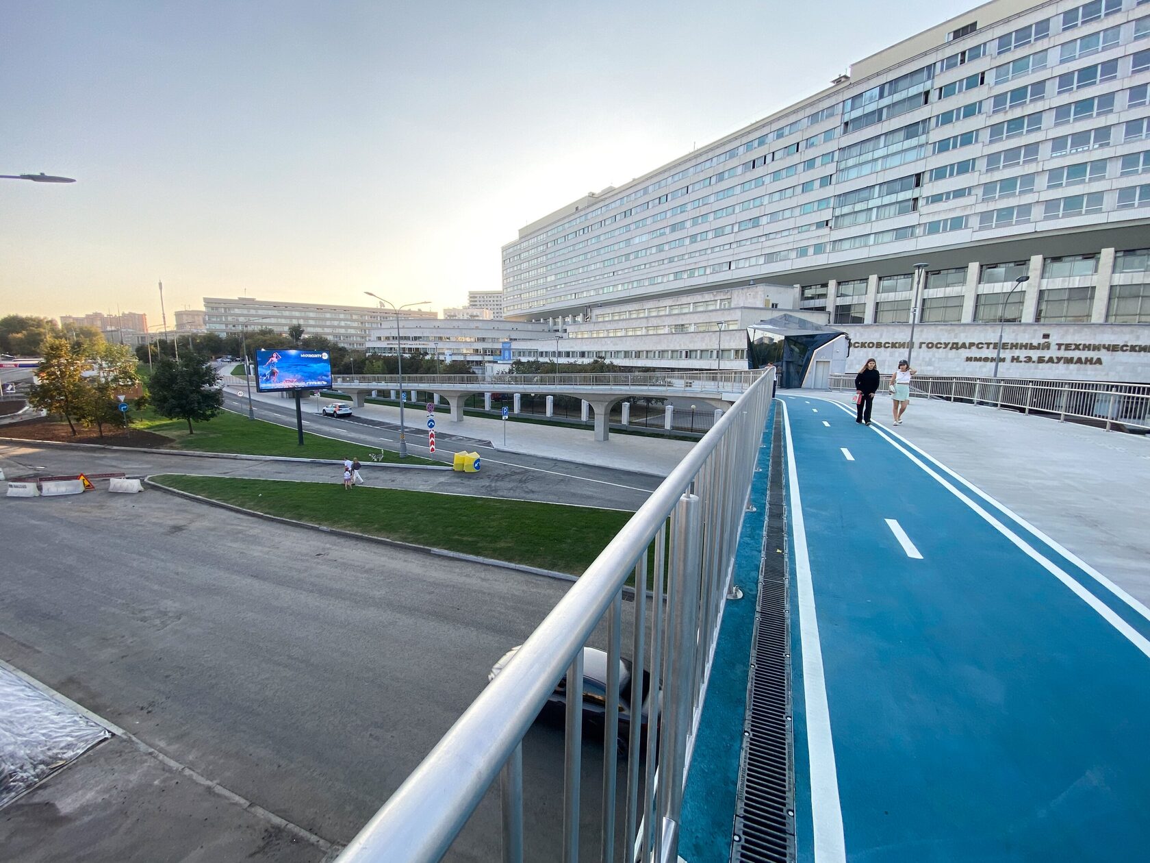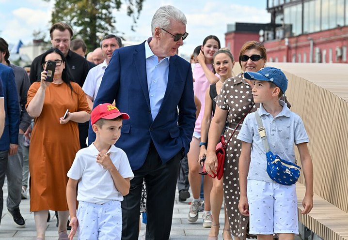 По вечерам на мосту включают подсветку теплых тонов, подчеркивающую его контуры и выделяя «мачты» на фоне ночного московского неба. Великолепное место для прогулок, встреч и отдыха у воды после рабочего дня!